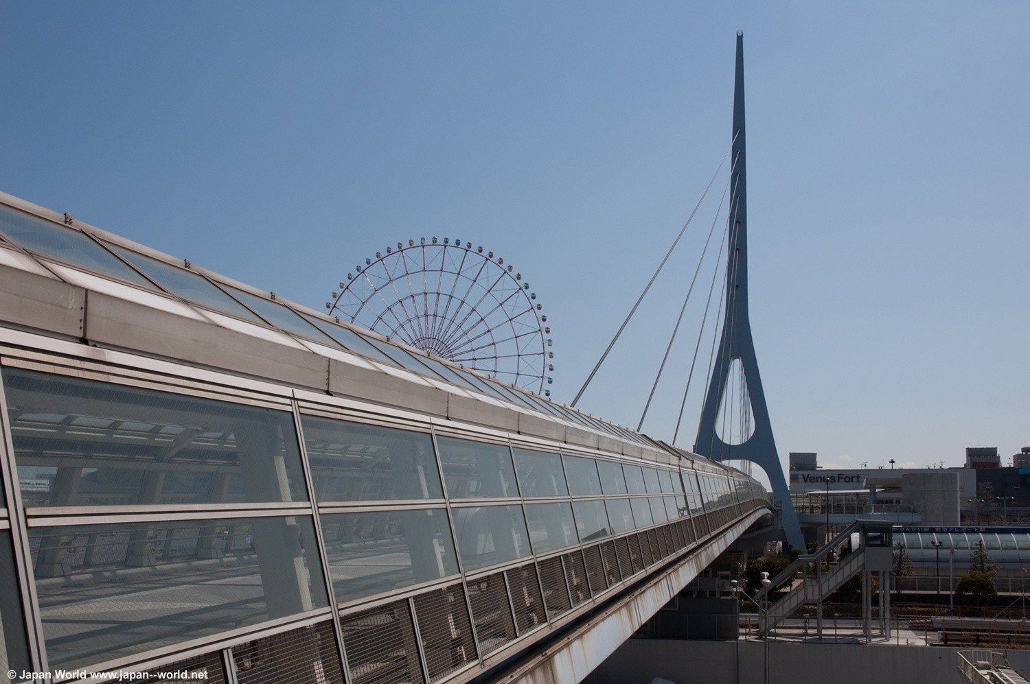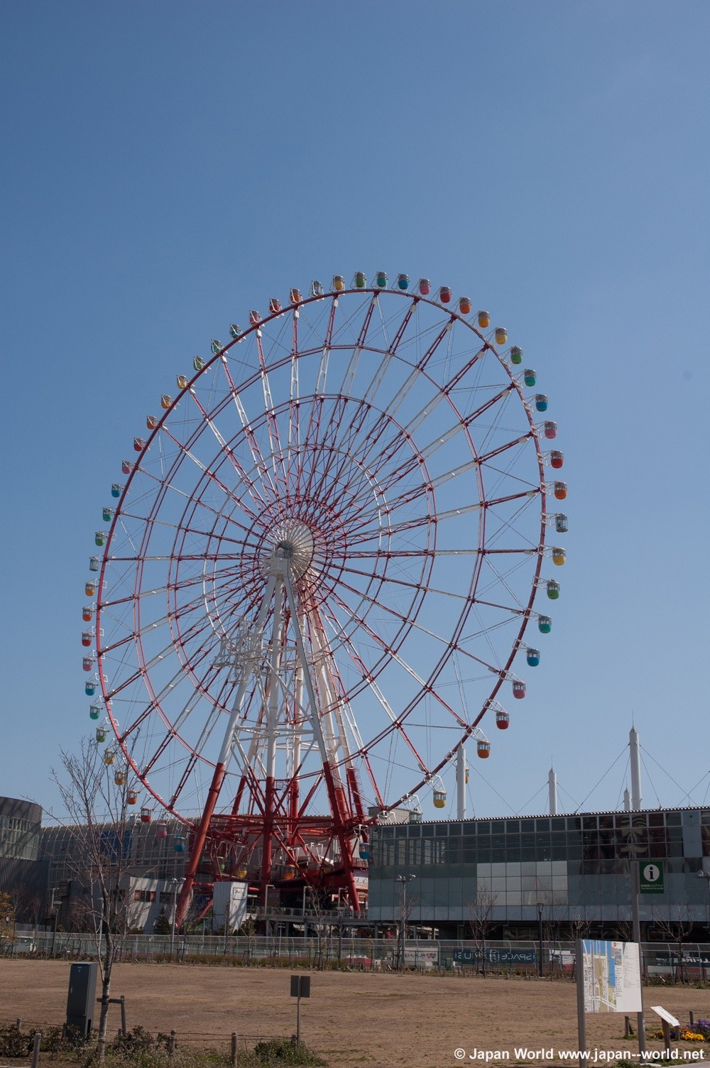Le Daikanransha est une roue d'une hauteur de 115 mètres pour un diamètre de 100 mètres qui se trouve à Odaiba dans la baie de Tokyo.