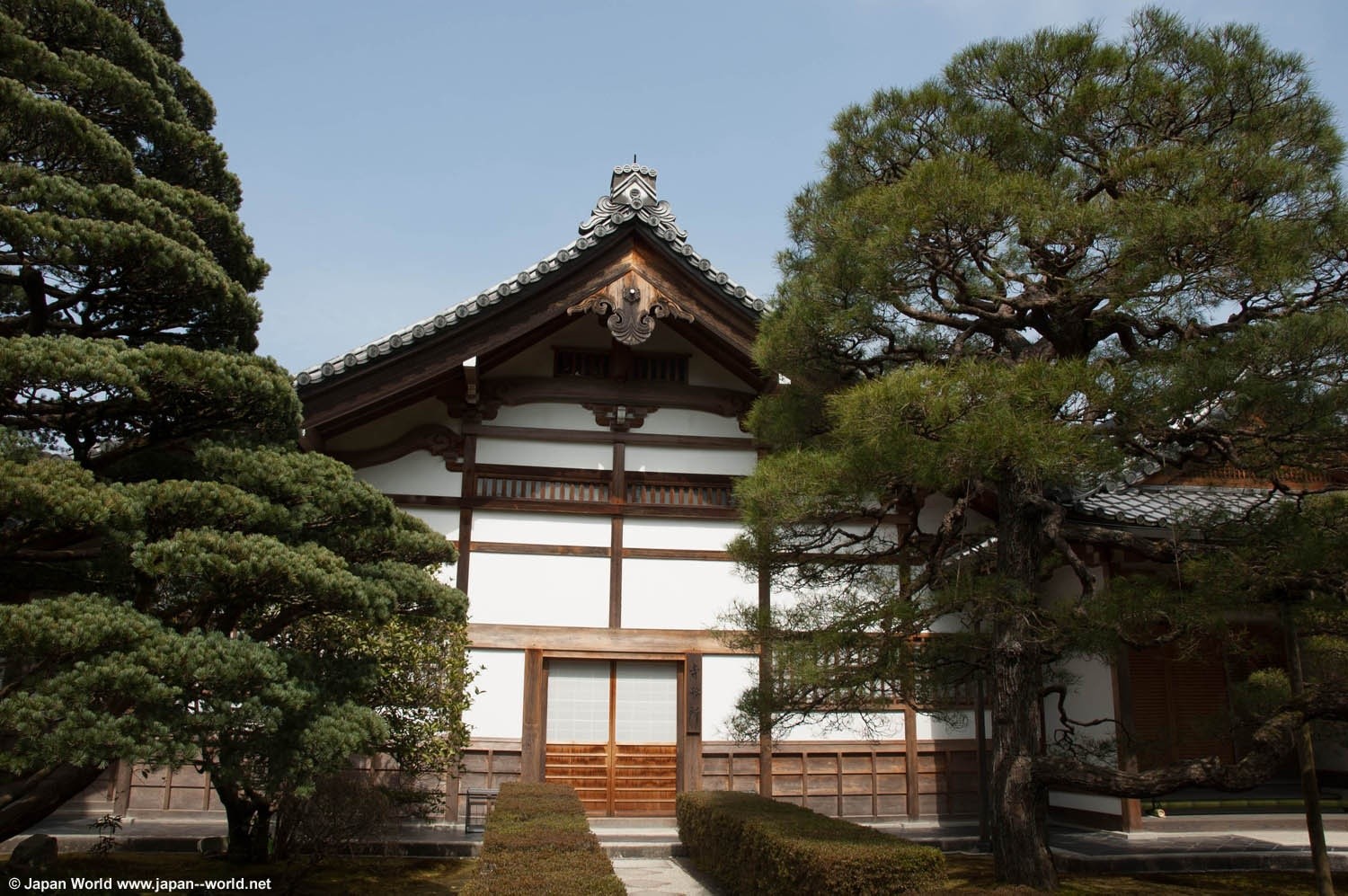On est accueilli par de majestueuses et longues haies d'environ 50 mètres de longueur en pierres, en bambous et avec la présence de camélias quand la saison s'y prête. Elles bordent le chemin de chaque côté avant d'arriver sur le temple.