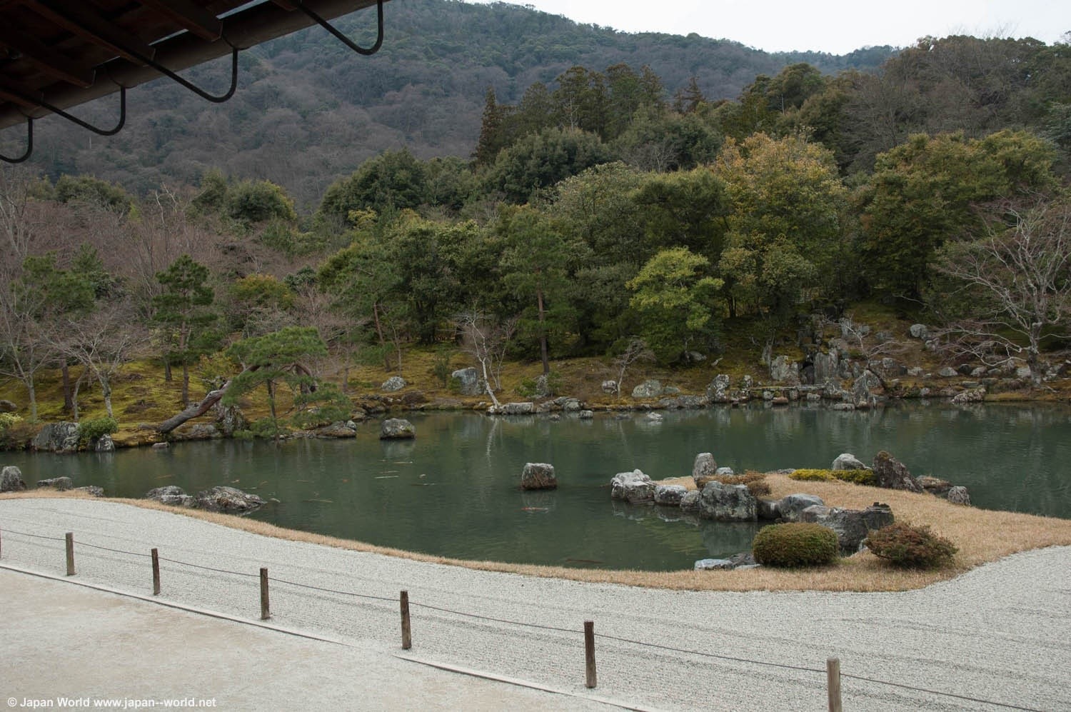 Le jardin paysager est un des plus anciens du Japon. Il garde la même forme que quand il a été conçu par Muso Soseki au XIVe sicèle. Il est connu comme étant le Jardin Sogenchi. Ce jardin permet aussi la promenade autour du bassin sogenchi avec ses carpes koi.